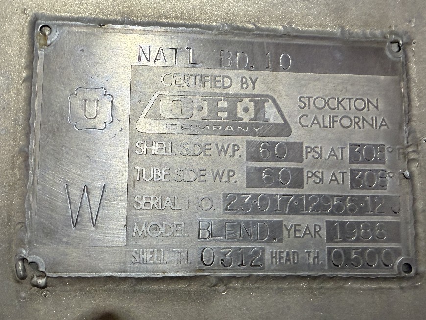 Working Pressure of 60 psi at 308 degrees