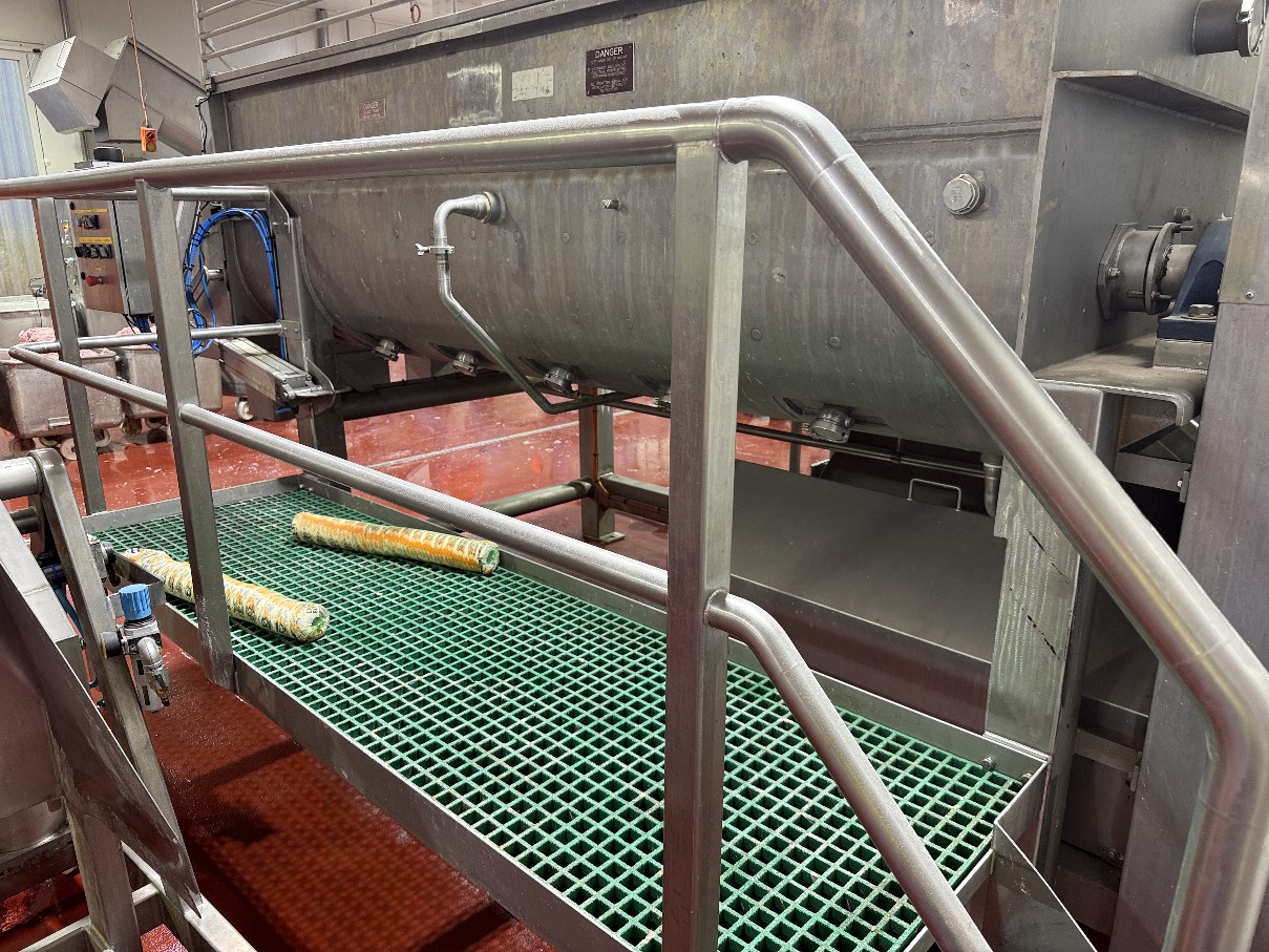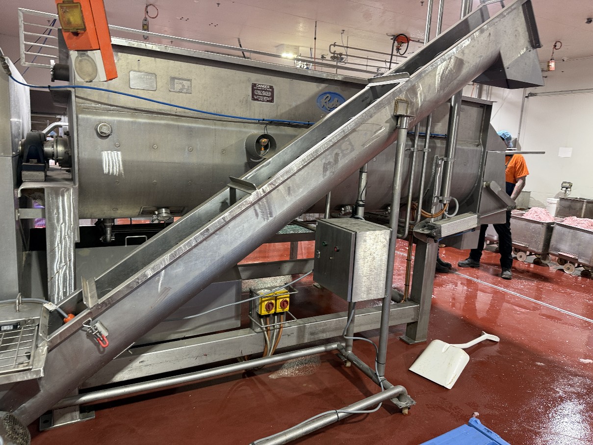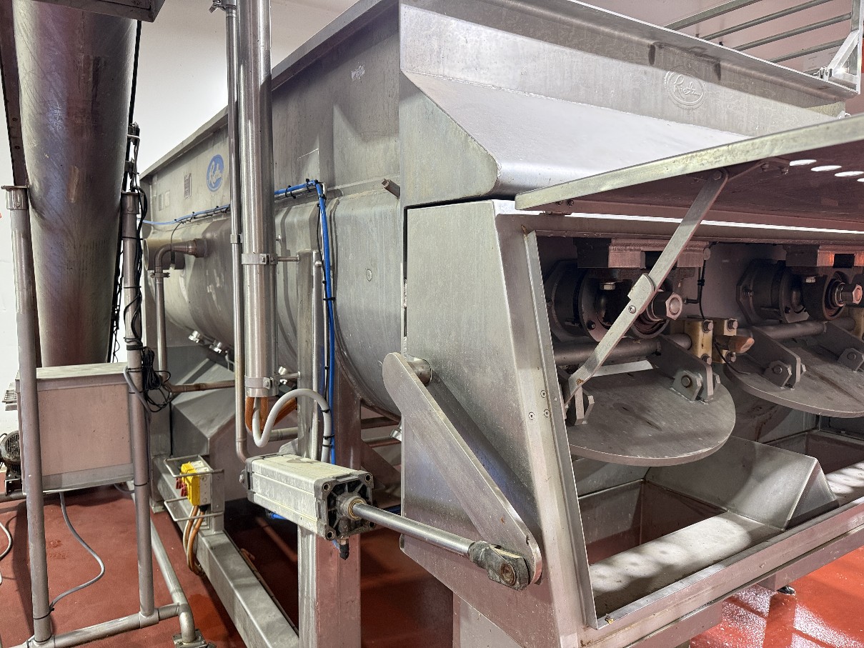 RIETZ jacketed cooker/blender is all stainless steel and features top loading with twin bomb door end outlet.
