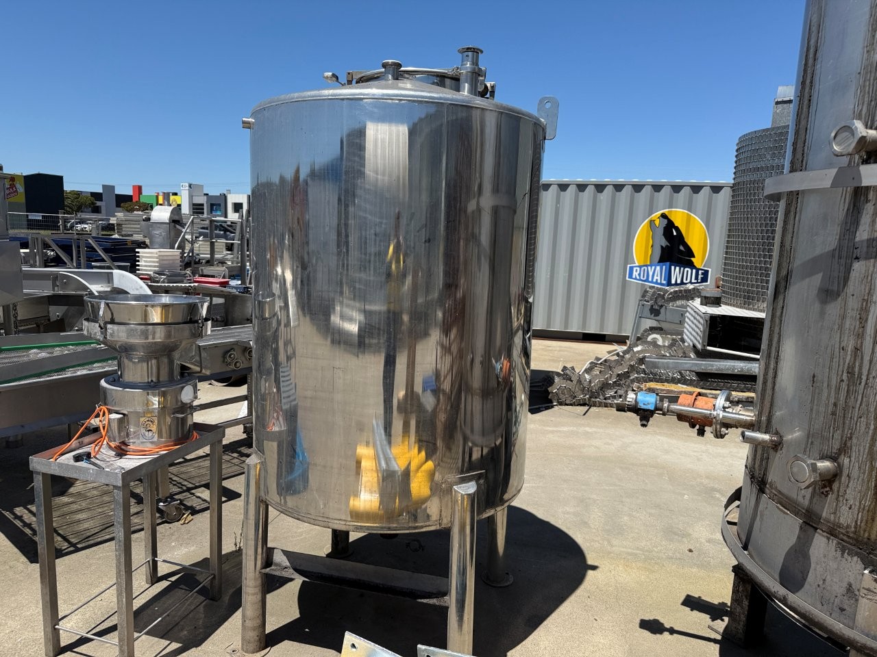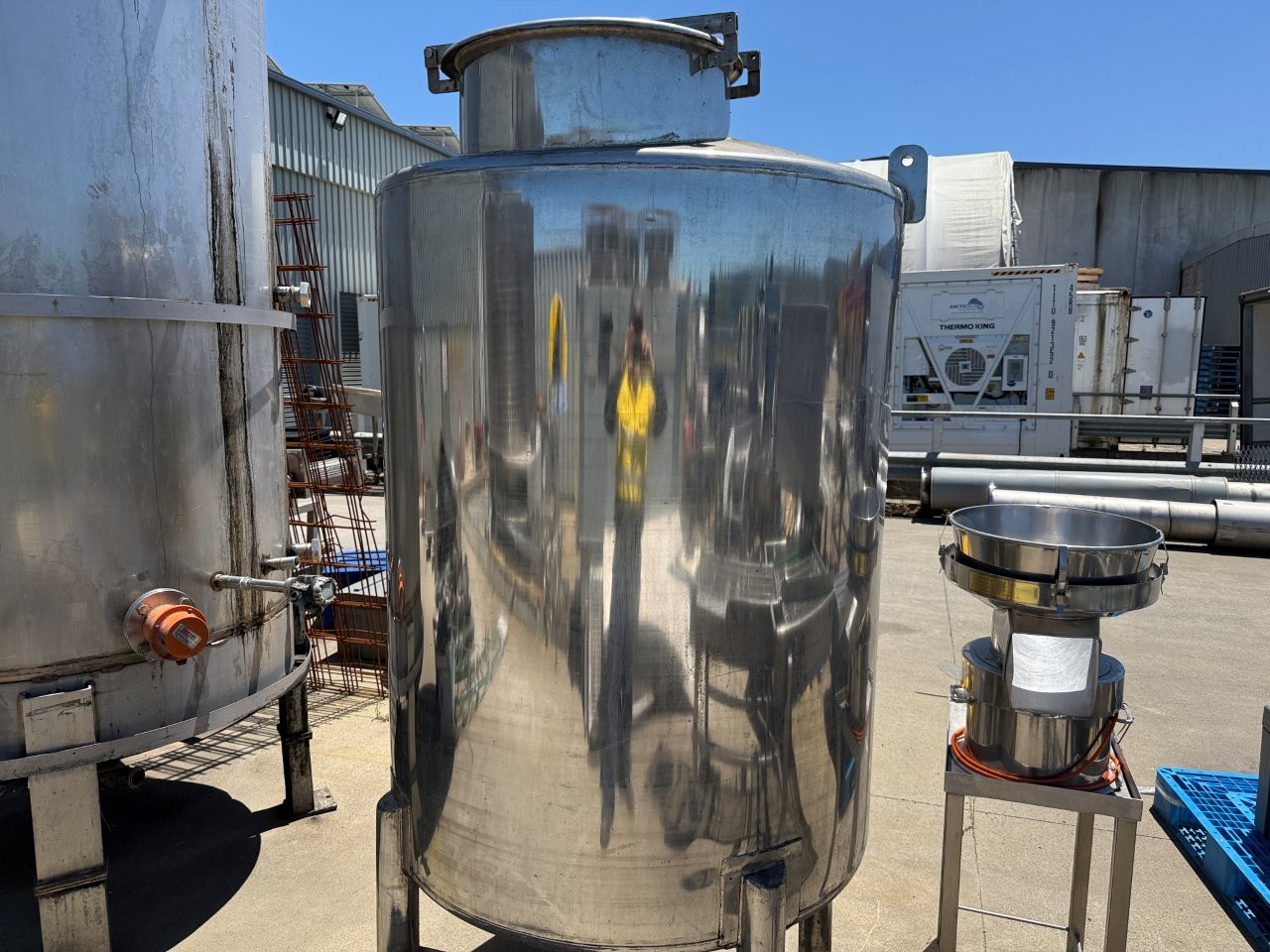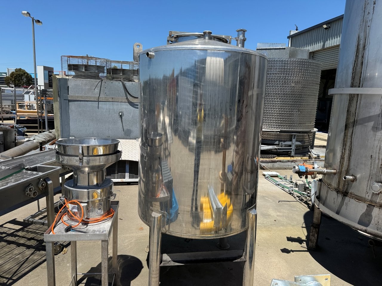 January 9, 2026Tank SS 1.1m dia x 1.4m high OA 2.4m high cone bottom 1,300 Ltrs